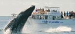 赏鲸游船保证100%看到鲸鱼的记录,(或免费回航)不会让您无功而返。游船上所带的游客较少,以保证您能享有到观赏鲸鱼的绝佳位子。您将能够轻轻松松地近距离观赏,而不用费心与他人你推我挤争夺有限的位子。我们的海洋学家将提供独一无二的讲解和大量的拍照机会。在我们返航之前,记录下与大迁徙途中的巨鲸美丽邂逅吧!